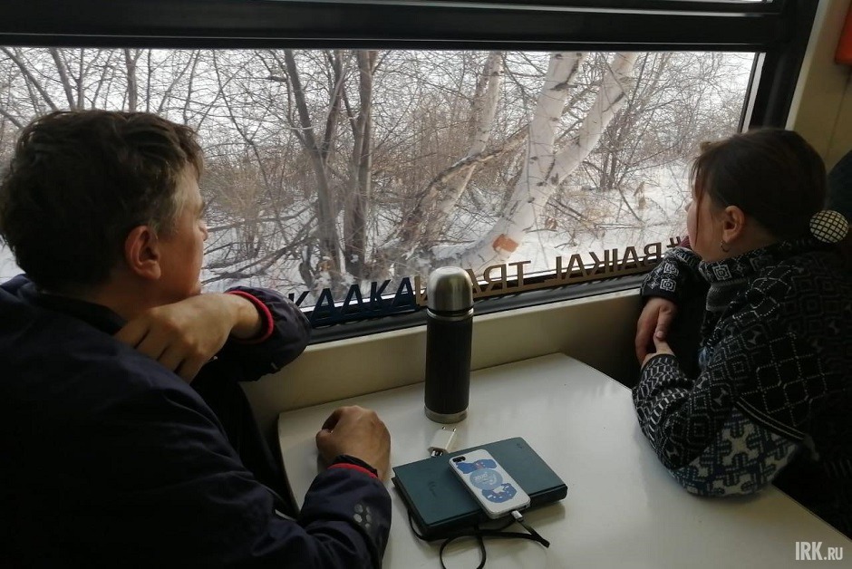 Время прогулок истекло, и хивус направился к Порту Байкал. На станции нас уже ждал рельсовый автобус (сотрудники и местные называют его «рашка»). В вагоне было тепло. У окон расположены мягкие кресла, между ними — столики, а у приветливой проводницы можно купить кофе, чай и что-нибудь съестное. В вагоне также есть телевизоры, где крутятся фильмы о Байкале и истории КБЖД.