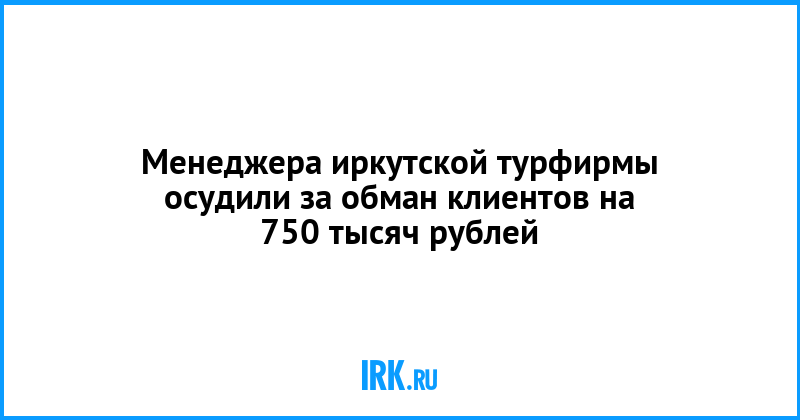 Кировский районный суд Иркутска признал менеджера одной из турфирм виновной в мошенничестве, присвоении и растрате денежных средств клиентов. В 2014-2015 году женщина получила от пяти семей 750 тысяч рублей за путевки в Турцию, Таиланд и Вьетнам.